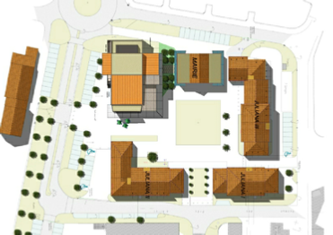 Implanter la nouvelle mairie du village dans le quartier en développement |