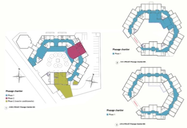 Opération de rénovation extension menée en 6 phases consécutives sans fermeture de l'établissement - Réfection complète du SSI