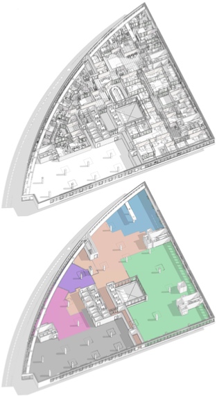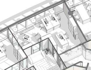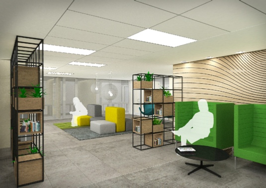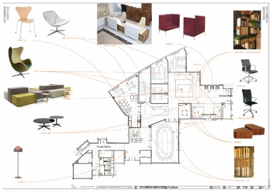 A partir d’un plateau brut dans un immeuble récent, aménagement des bureaux et locaux communs pour EDF et 3 filiales | Zonage par filiale et par service | Architecture intérieure et proposition mobilier & éclairage.